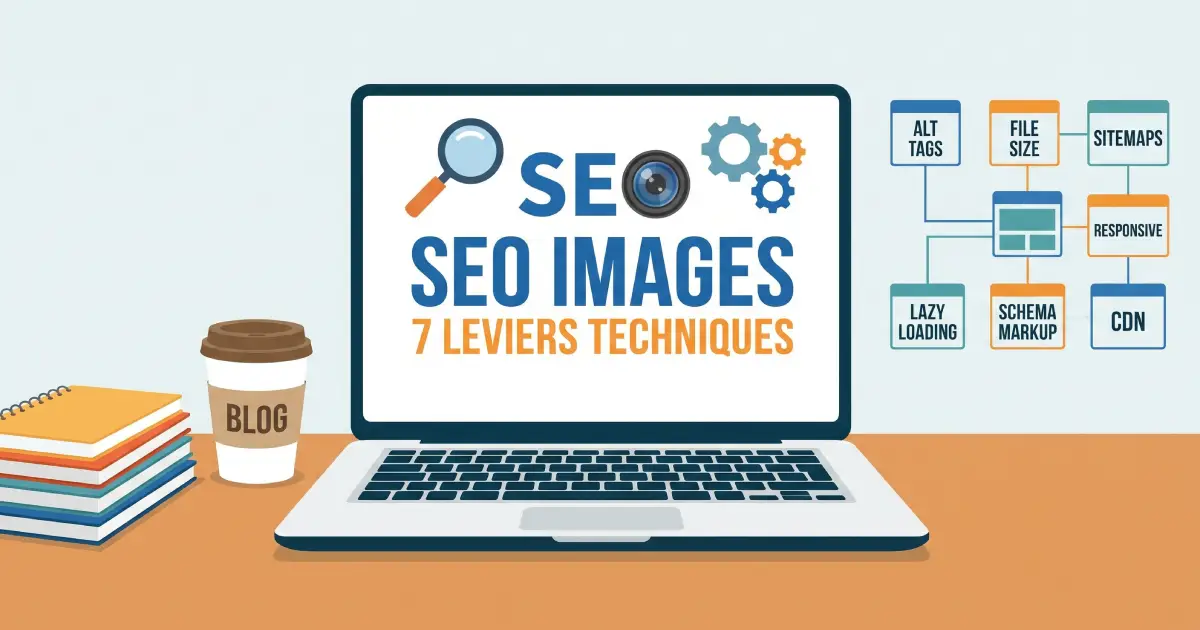 Le SEO image en 2026 tient en sept leviers techniques avec seuils chiffrés : nom de fichier descriptif, alt text 60 à 125 caractères, format WebP, poids sous 200 Ko, dimensions explicites pour éviter le CLS, lazy loading natif, et schema ImageObject. Sept leviers, mesurables, applicables en moins de 30 minutes par image. C’est ce qui fait la différence entre une image qui ranke dans Google Image Search et une image invisible qui plombe en plus le LCP de la page.